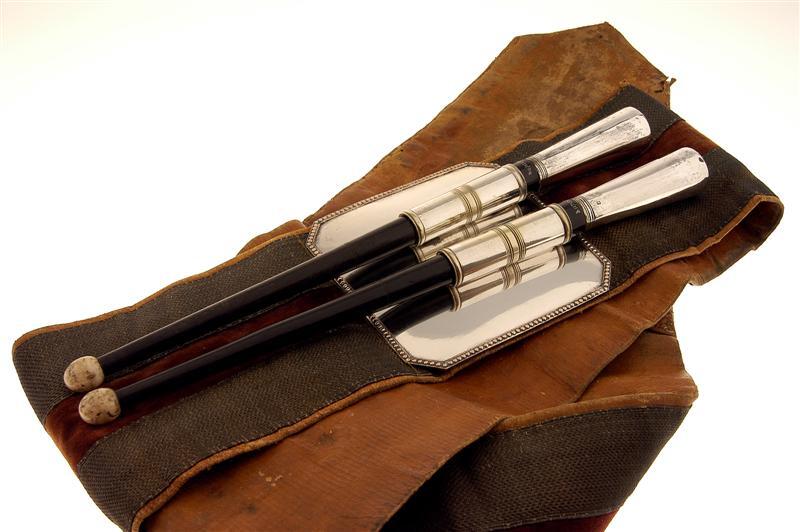 Zie verder inv.nrs. 11747.139a t/m c. Slagband (a) met stokken (b en c) behorend bij zwaard met schede inv.nr. 11747.182 a en b.