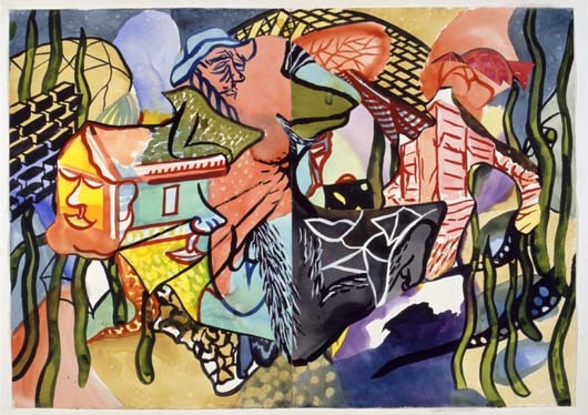 - BeschrijvingAquarel uit de serie Isleboro, ontstaan aan de kunst van Maine (?) in de VS. Ook vermeld als aquarel uit de reeks 'The shifting of the horizons' uit 1989.