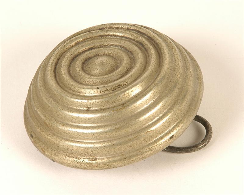 Blank metalen bal. Voorzijde met concentrische ringen. Achterzijde vlak, metaal. Model 1854, voor onderofficier en manschappen.