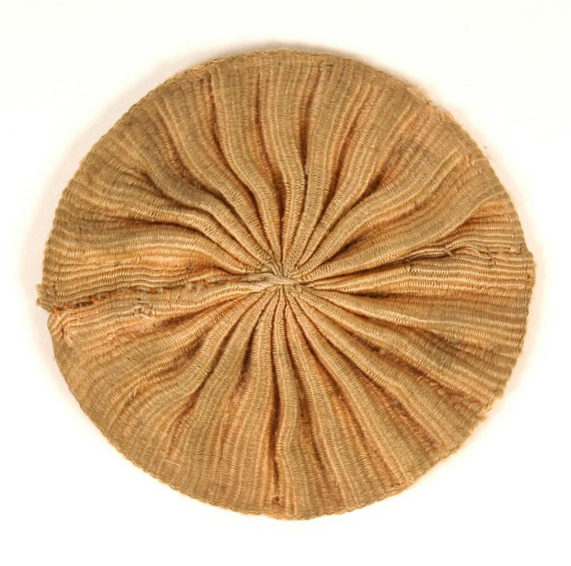 - BeschrijvingKokarde van oranje zijden lint. Ketting naturel linnen, inslag gedeeltelijk oranje zijde (voorkant) en gedeeltelijk naturel linnen. In het midden gerimpeld en bijeengebonden met oranje(?) garen. Zijnaden dichtgenaaid met oranje garen. Model 1828.