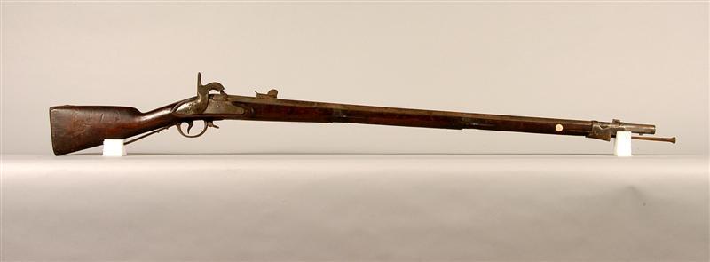 - BeschrijvingGeweer nr. 636 met bajonet met nrs. 24 en 15 en laadstok. 'Echt' percussiegeweer.
