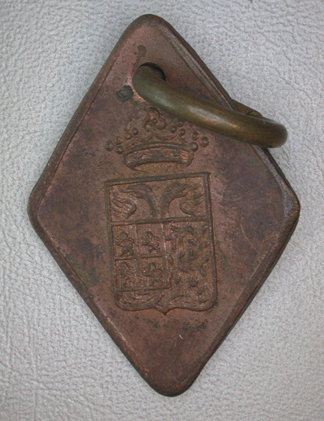 - BeschrijvingRuitvormige penning met en ring Vz: Gekroond stadswapen om het geheel een doorlopende rand Kz: In hoog reliƫf het jaartal 1899 daaronder ingeslagen het nummer 645 Om het geheel een getrokken rand