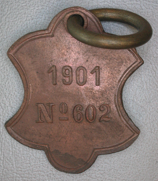 Schildvormige penning met ingesnoerde zijden boven en onder een uitstulping. Midden boven een gat en ring. Vz: Gekroond stadswapen met boven en onder een opschrift. Om het gheel een getrokken rand. Kz: In hoog reliƫf het jaartal 1901 daaronder ingeslagen no. 602. Om het geheel een getrokken rand.
