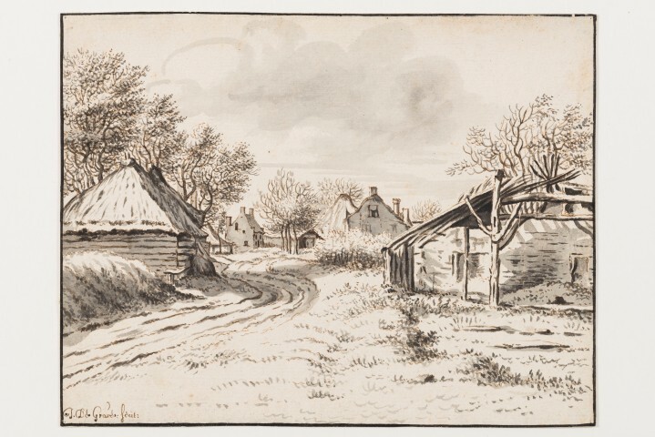 - BeschrijvingRechtsboven in de tekening een weggeradeerd, niet meer te reconstrueren opschrift. In verso in potlood (niet eigenhandig): "Tot Borchvliet by Bergen op Zoom/16 10/1 71" en "200". In paars het stempel: "Provinciaal Genootschap van/ Kunsten en Wetenschappen/ in Noordbrabant/ 'sHERTOGENBOSCH".