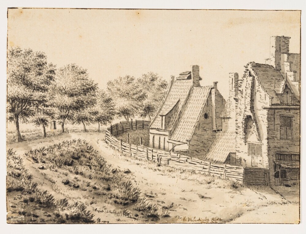 - BeschrijvingIn verso in bruine pen: "pas binnen de wouse poort" in potlood (niet eigenhandig): "167" .