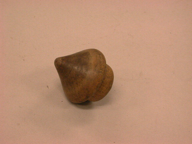 - BeschrijvingBeitel met smal blad en schuine spitse vouw. Gedraaid handvat met kerfversiering en beslagring.