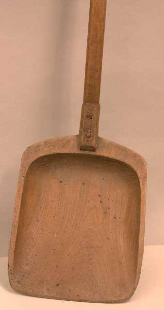 - BeschrijvingIepehouten bak (ondiep) met een schuine steelaanzet verbonden door twee nagels en moeren aan een beuken steel. Om graan te scheppen om het ergens in te doen, om te gooien of te wannen.