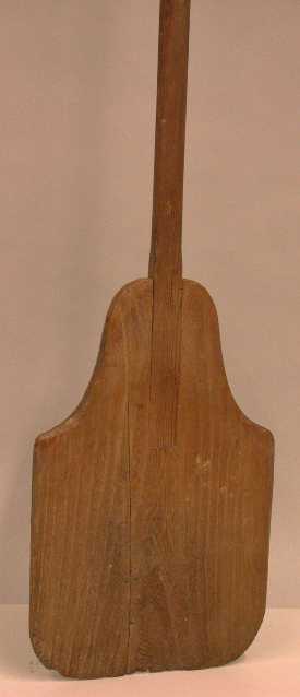 - BeschrijvingLange broodschieter met essen steel en platte iepen bak die smal toeloopt.