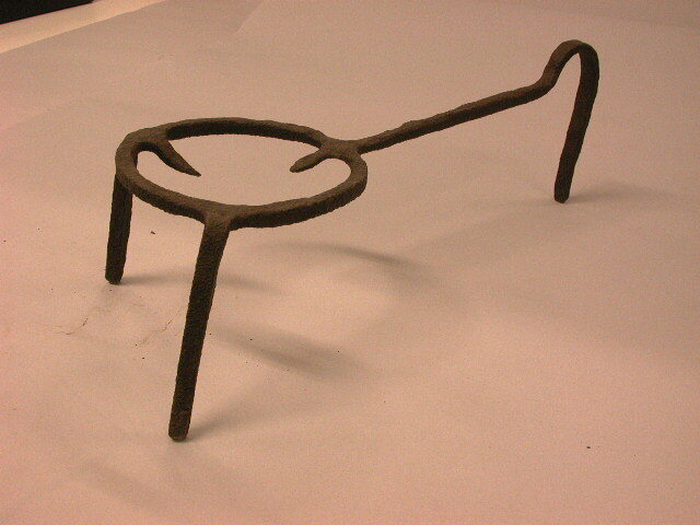 - BeschrijvingRonde treeft met steel, die aan het uiteinde is omgebogen tot de derde poot. De poten verlopen tot tongetjes naar het midden van de treeft.