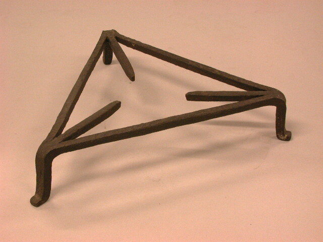 Driehoekige treeft met drie poten die overgaan in 3 tongen, wijzend naar het midden van de treeft.