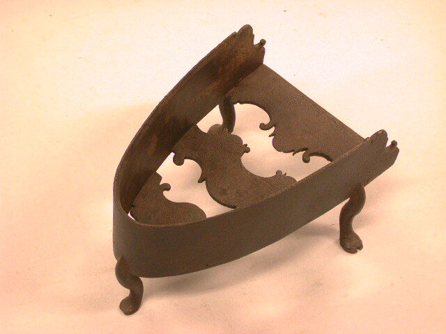- BeschrijvingAfgeronde spits, rechte spiegel, opstaande rand, gesneden sierranden, geteende hoefvormige pootjes, die tamelijk lang en gebogen zijn.