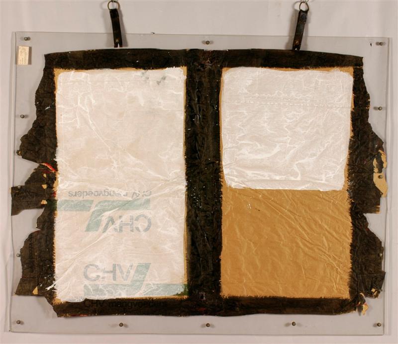 Aan weerszijden beschilderde veevoederzak, vertikaal