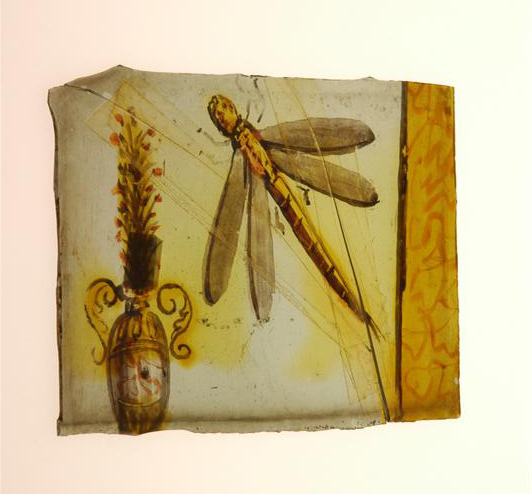 - BeschrijvingRuitje identiek aan 00827.5, iets lagere uitsnede, dus met meer vaas en zonder ranken. Ruitje in 3 stukken, samen 8,4 x 11,8 cm. Alle randen, en onderranden, nieuw rechtgesneden, doch, als 5, in lood gevoegd.