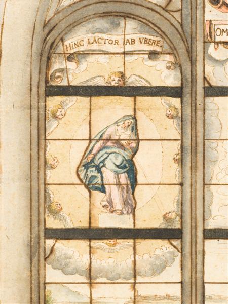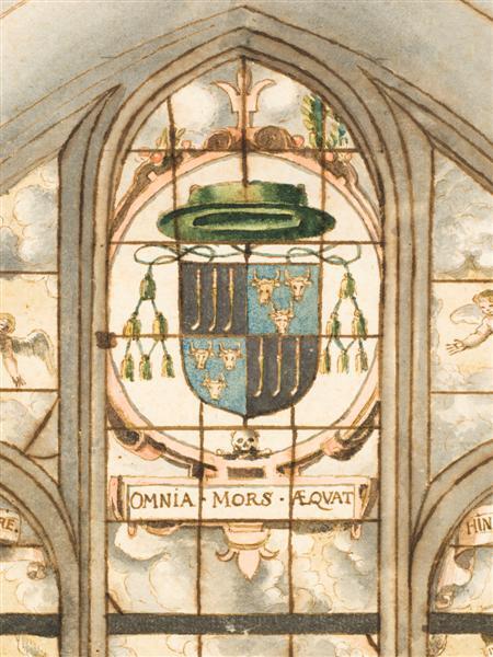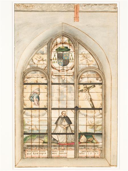 Gebrandschilderd raam met bisschop Masius uit de Sint Pieterskerk te 's-Hertogenbosch