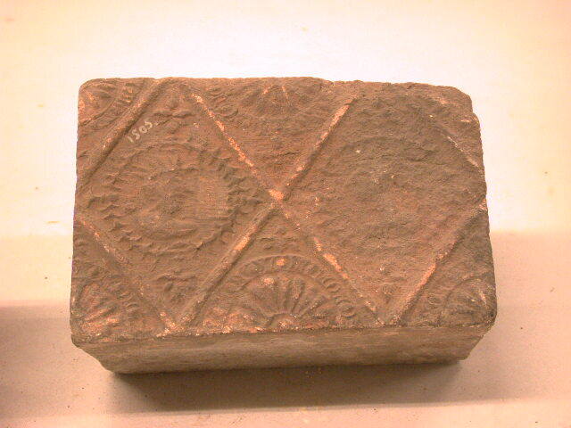 - BeschrijvingDoorlopend patroon met twee staande ruiten waarin twee ronde medaillons met de toegewende hoofden van een gekroonde man (l) en vrouw (r). Antwerps type ?