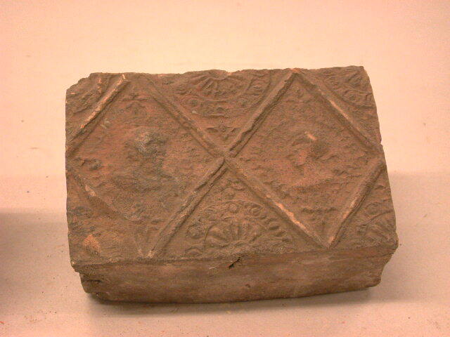 - BeschrijvingDoorlopend patroon met twee staande ruiten waarin twee ronde medaillons met de toegewende hoofden van een man (l) en vrouw (r). Antwerps type ?