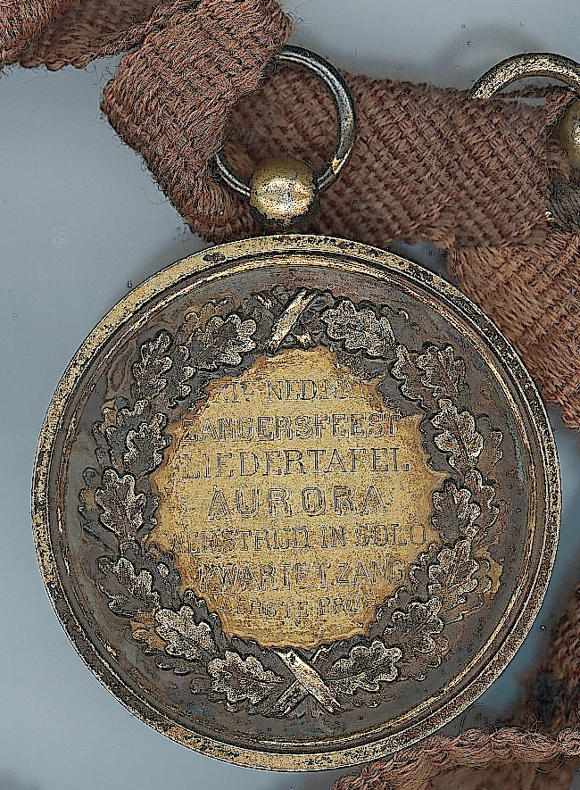 Prijsmedaille elfde nationale zangersfeest te Utreht van de liedertafel "Aurora"