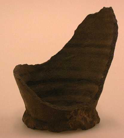 -geknepen voet -buik met onderaan geprononceerde draairibbels -bruin van kleur