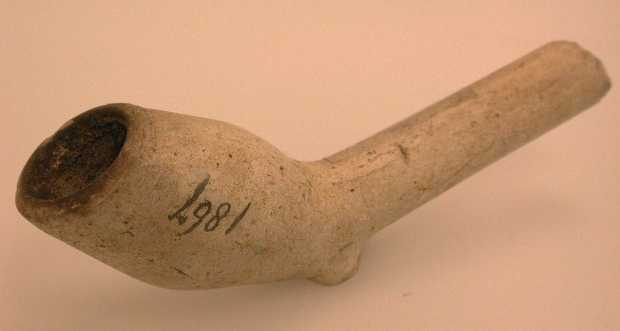 Aardewerk rookpijpje van lichtgekleurde pijpaarde