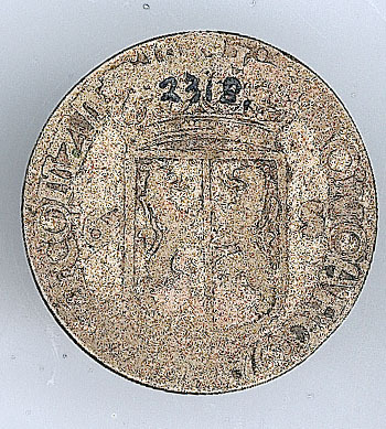 - BeschrijvingVoorzijde: geharnaste ridder te paard met getrokken zwaard, met een omschrift. Keerzijde: gekroonde wapen van Gelre geflankeerd door de waarde-aanduiding 6-S, met een omschrift.