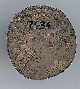 Keerzijde: gekroond Oostenrijks-Bourgondisch wapen omhangen met een Gulden Vliesketen, met een omschrift. Om het geheel een parelrand.