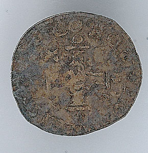Voorzijde: een kruis met een gevlochten hart, geflankeerd door twee x-en en twee vuurstalen, met een omschrift. Om het geheel een parelrand.