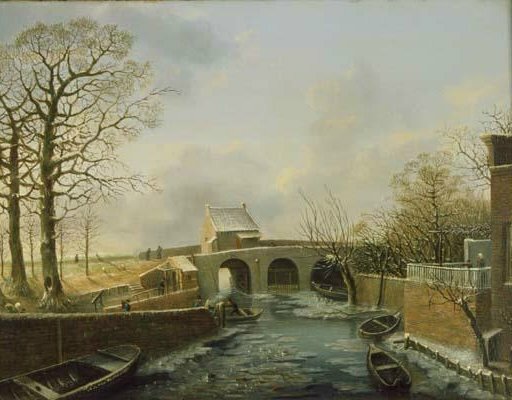 - BeschrijvingDe rivier de Grote Hekel te 's-Hertogenbosch in de winter, gezien van de oude Dieze.