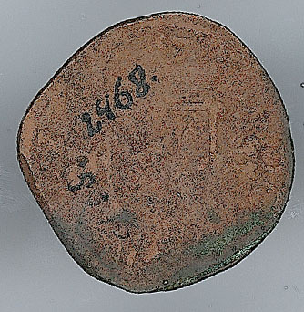 - BeschrijvingVoorzijde: de Neder;landse maagd gezeten in een Hollandse tuin, wijzend naar een stralende wolk, met een omschrift. Om het geheel een parelrand. Keerzijde: een gevorkt kruis beladen met het gekroonde wapen van Holland, boven de kroon het jaartal. Om het geheel een parelrand.