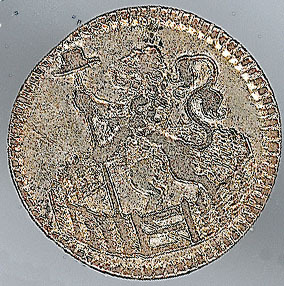 - BeschrijvingVoorzijde: binnen een parelrand de Nederlandse leeuw met lans en vrijheidshoed in een Hollandse tuin. Keerzijde: binnen een parelrand een opschrift.