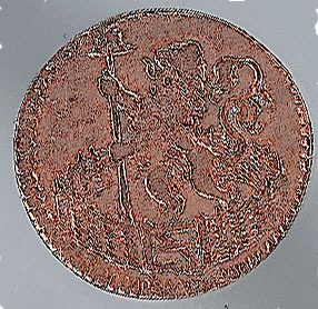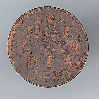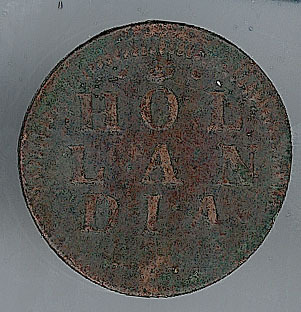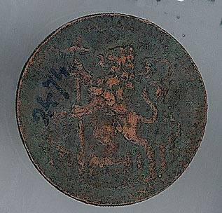 - BeschrijvingVoorzijde: binnen een parelrand de Nederlandse leeuw met lans en vrijheidshoed in een Hollandse tuin. Keerzijde: binnen een parelrand een opschrift.