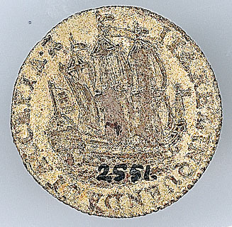- BeschrijvingVoorzijde: Het gekroonde wapen van Zeeland, geflankeerd door de waarde aanduiding 6-ST. Omschrift: MON:NOV.ARGENT ORDIN ZELAND 1780. Om het geheel een parelrand. Keerzijde: Een zeilschip varend naar rechts. Omschrift: ITA RELINQUENDA UT ACCEPTA.[toren]. Om het geheel een parelrand.