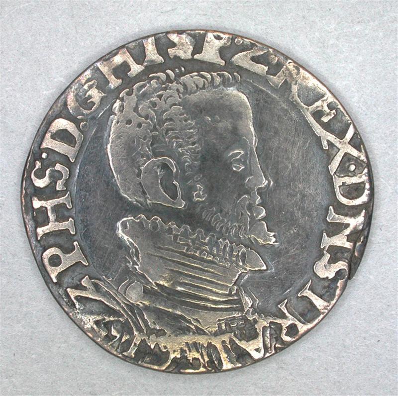 Geslagen te Utrecht. Voorzijde: Naar rechts gewende buste van Philips II. Omschrift: PHS.D.G HISP.Z.REX.DNS.TRAIEC 1572 om het geheel een parelrand. Keerzijde: Een bourgondisch stammenkruis beladen met een vuurstaal waaruit vonken ontspringen. Boven het vuurstaal een kroon, eronder het ordeteken van het Gulden Vlies. Omschrift: DOMINVS.MIHI.ADIVTOR om het geheel een parelrand.