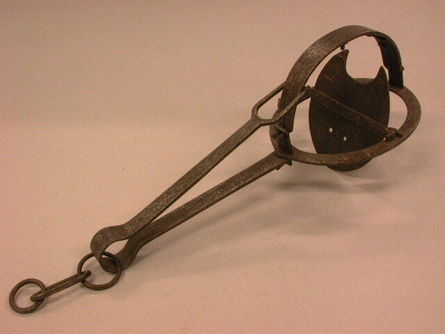 - BeschrijvingIJzeren klem voor grootwild. Twee gladafgewerkte klembogen met hoefvormige lokaasplaat met hechtlijn (voor lokaas). Mechanisme deelvormige veer die ook dient als handvat. Pinnetje (draaibaar) op de rand van de grondvorm. Hiermee kan de klem op een veilige manier worden afgesteld.
