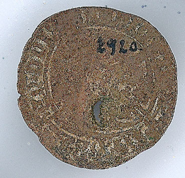Dubbele stuiver later tot noodmunt gestempeld. Onherkenbaar